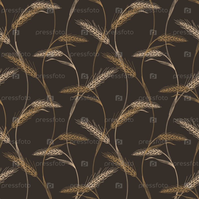 Бесшовный рисунок двух рядов пшеницы на коричневом фоне. для дизайна упаковки, карт, обложек, печати, этикеток продуктов и тканей