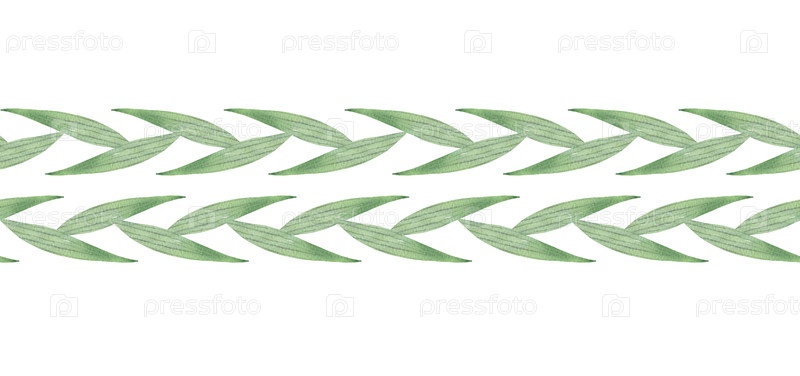 Бесшовная двойная граница листьев. Иллюстрация акварельных красок ручной работы. Для дизайна упаковки, карт, обложек, принтов, этикеток на продуктах и тканей