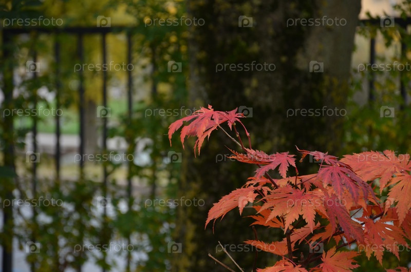 Кленовый японский аконитифолиум (Acer japonicum Aconitifolium) с красными осенними листьями в Ботаническом саду Петра Великого в Санкт-Петербурге
