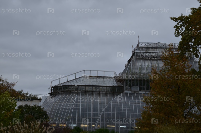 Здание теплицы Ботанического сада Петра Великого в Санкт-Петербурге осенью