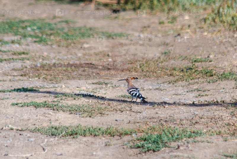 Упупа эпопс на грунтовой дороге среди зелени