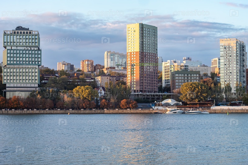 Городской пейзаж на закате: река Дон, Ростов-на-Дону, Набережная