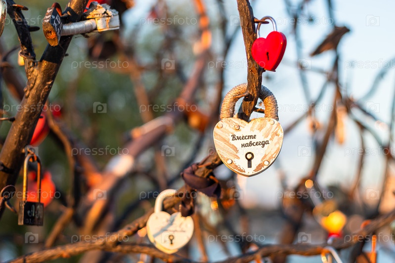 Вечная любовь: Белый замок-сердце с надписью 'Вместе навсегда' на закате