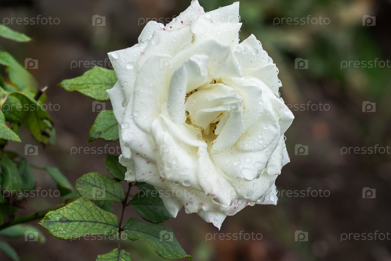 Белая роза с капельками росы после дождя