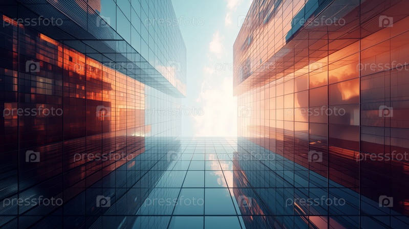 Солнечный свет отражается на современных небоскребах в футуристическом городе