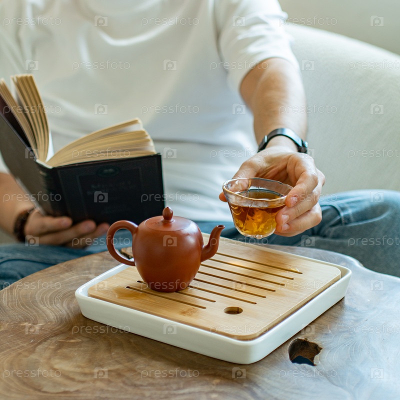 Спокойная сцена чаепития и чтение увлекательной книги, идеально подходит для расслабления и осознанности