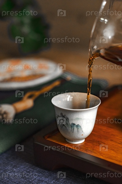 Спокойная сцена, где чай наливают в красивую китайскую чашку, идеально отражает суть культуры чая