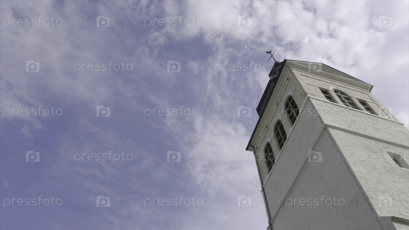 Белый церковный шпиль против голубого неба