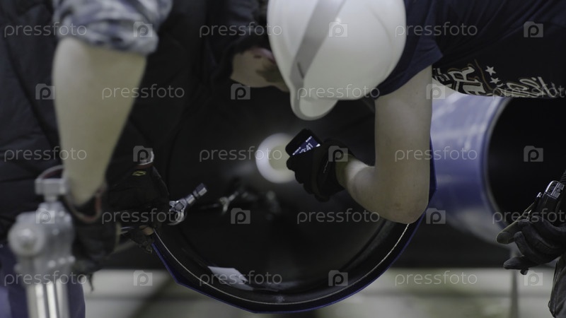 Мужчины смотрят внутрь трубы