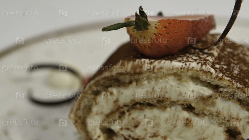 кусочки клубники в белом битом ванильном креме. фруктовые ломтики близко друг к другу. закрыть ломтик клубники и соус на тарелке. кафе десертный меню
