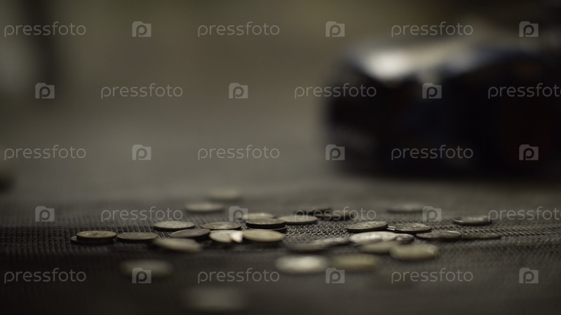 Из банка выливались монеты.Финансовая концепция