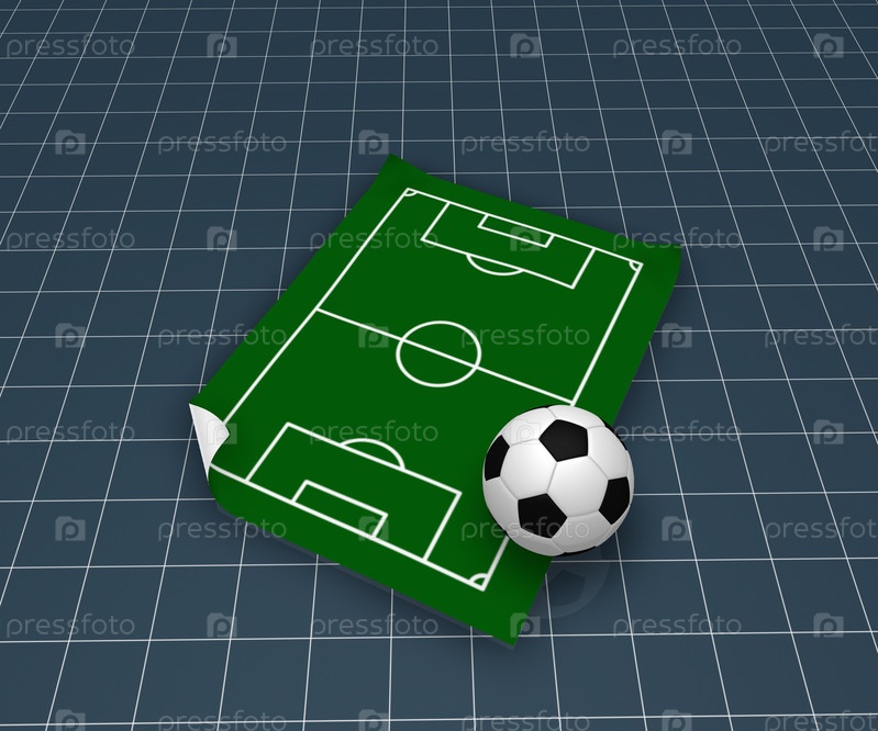 Футбольный мяч и площадка - 3d иллюстрация