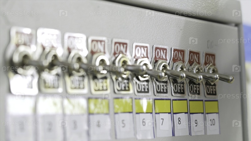 Закройте панель переключателя безопасности. Продолжайте. Ручная панель с выключениями на заводском предохранителе. Рука фабричного работника переходит к кисти