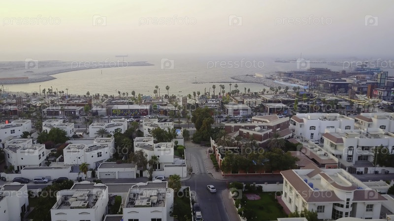 Красивая панорамная картина Дубая в ОАЭ. вид сверху. вид на Дубай, красивые дома, перекресток транспорта, трафик