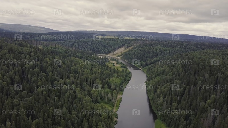 Великолепный панорамный вид с воздуха на туристическую часть реки при закате солнца. Красивый природный пейзаж летом. Европа