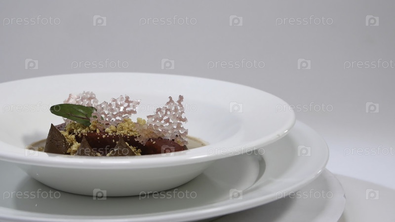 Салат из запеченной свеклы, руколы, сыра и орехов. Свежий салат с свеклой и апельсинами, еда. Вегетарианский жирный салат из свеклы, лука, грецких орехов, подается на белой тарелке вблизи