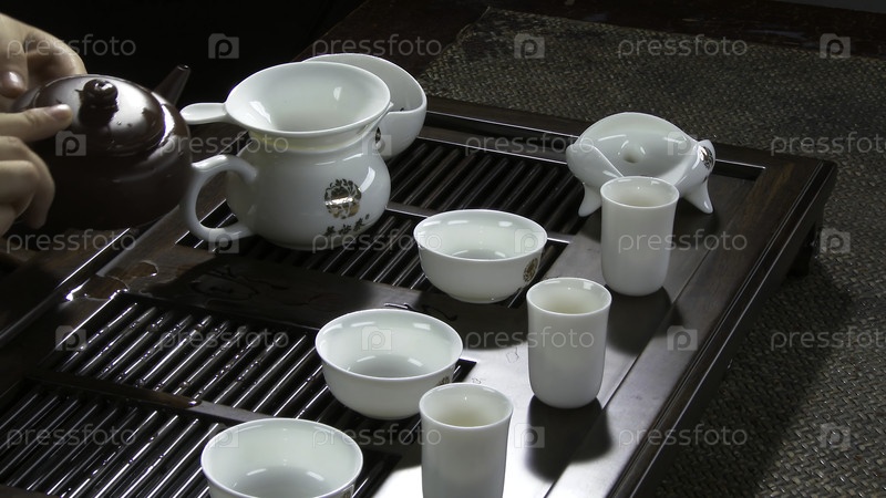 Закрытый стол для чаепития блюда и бамбук Китайская чайная церемония Японская чайная церемония
