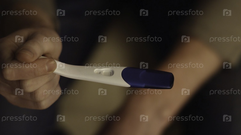 Рука мужчины держит положительный тест на беременность рядом.Руки мужчин держат тест на беременность и надевают его.Муж расстроен результатами теста на беременность