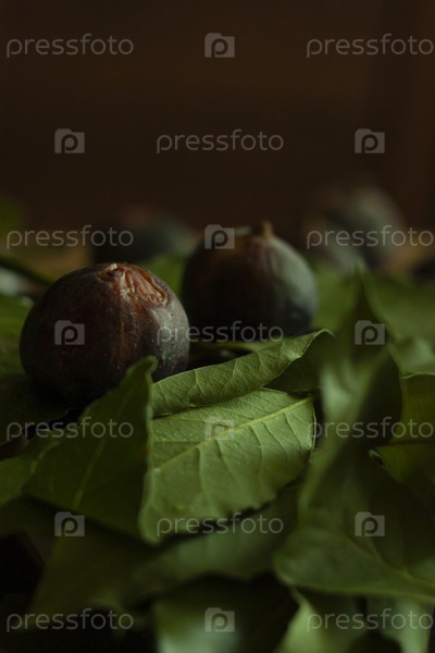 Фиги вблизи на листьях