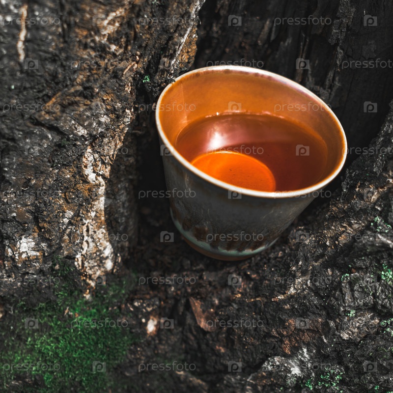 Наслаждаясь восхитительным опытом чаепития в миске, красиво расположенной в коре дерева