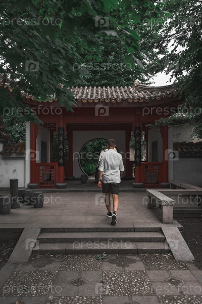Насладитесь спокойной прогулкой по красивому традиционному азиатскому саду, охватывающему тихую природу