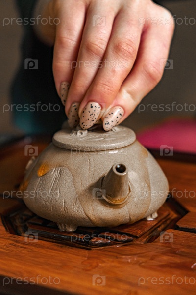 Элегантный чайник красиво представлен в спокойной церемонии чая, ожидающей внимания