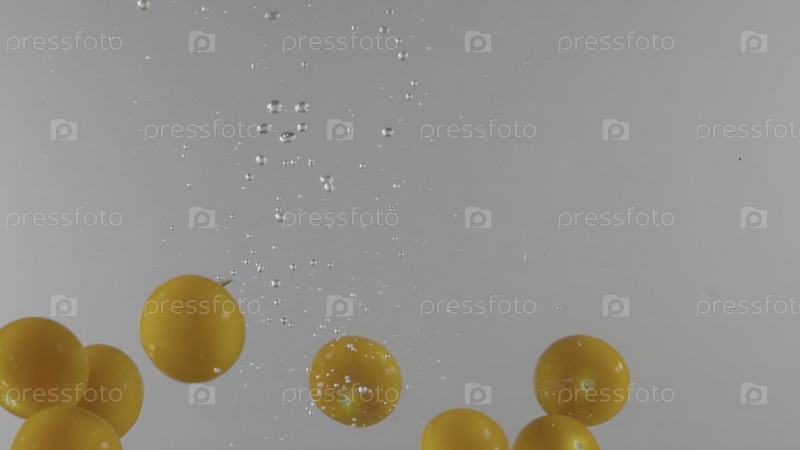 Ягоды попадают в воду на изолированном фоне. Продолжайте. Сочные ягоды падают в воду с пузырями. освежающее падение ягод в воду на светлом фоне