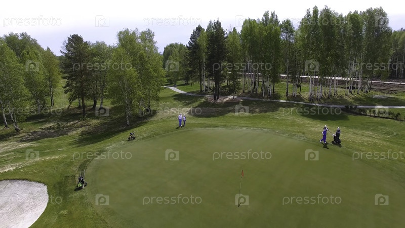 Профессиональные игроки на зеленом поле для гольфа