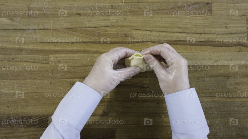 Вид сверху на изготовленные вручную пельменья. Сцена. Тонкие красивые пельмени от повара на деревянном столе. Концепция традиционной кулинарии