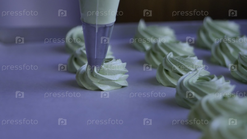 Положить сливочную начинку на кекс, ближайший снимок