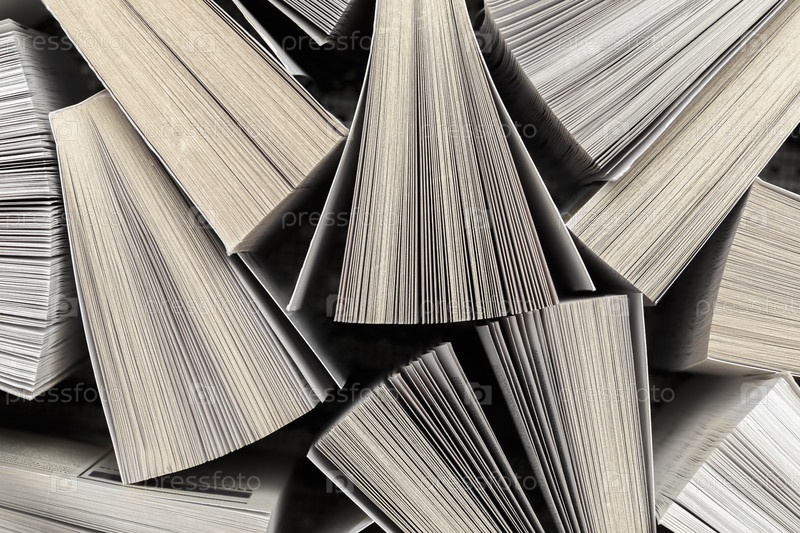 Взгляд сверху вниз на книги, полуоткрытые как веер.Концепция библиотеки, обучения и школы