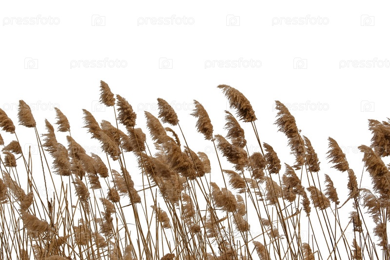 Стебли и соцветия сухого прибрежного тростника изолированы на белом
