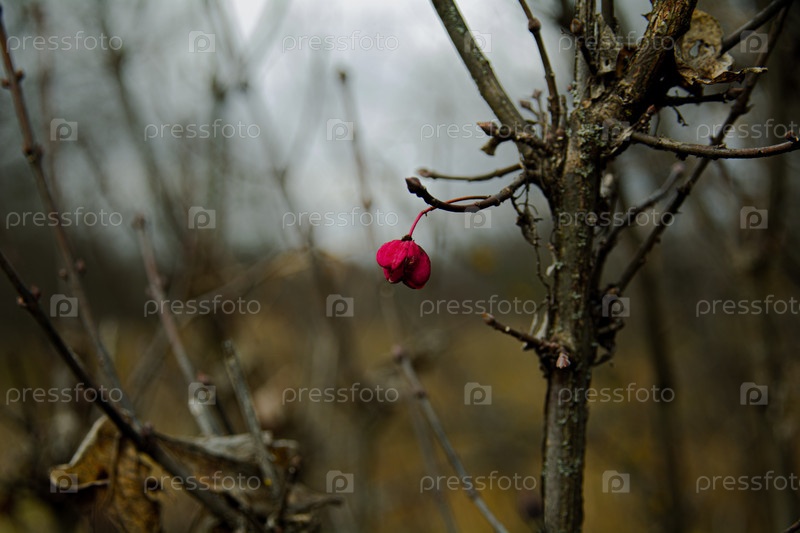 осень поздняя осень лес ветка красная ягода дикая ягода природа крупным планом макросъемка тишина одиночество спокойствие минимализм атмосферное фото естественный свет мягкое боке глубина резкости медитация природный арт