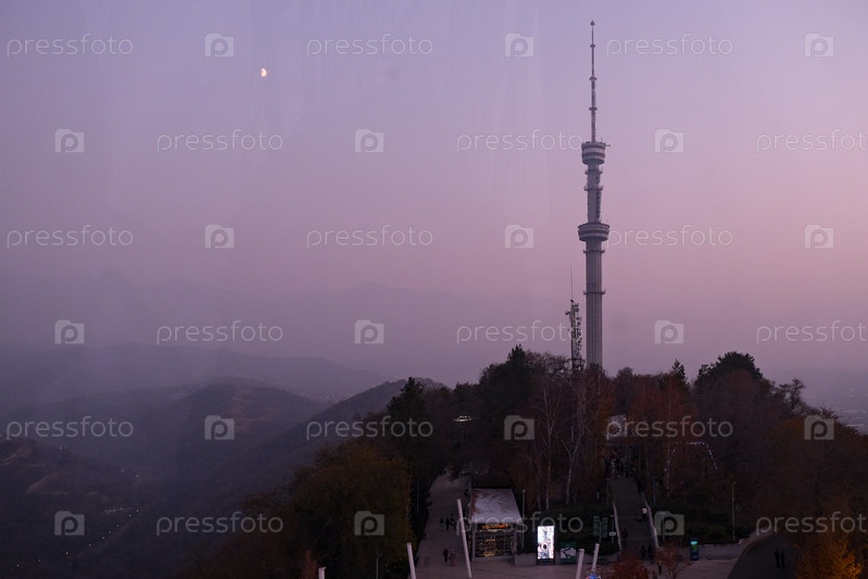 Вид на Алматинскую телебашню в Алматы, Казахстан
