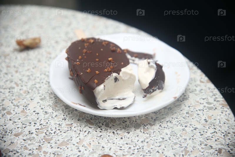 Сладкое мороженое Эскимо на тарелке