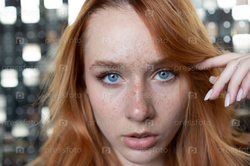 Портрет красивой молодой женщины с рыжими волосами в студии