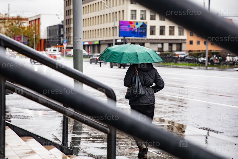 Человек с зонтиком на вечерней улице города