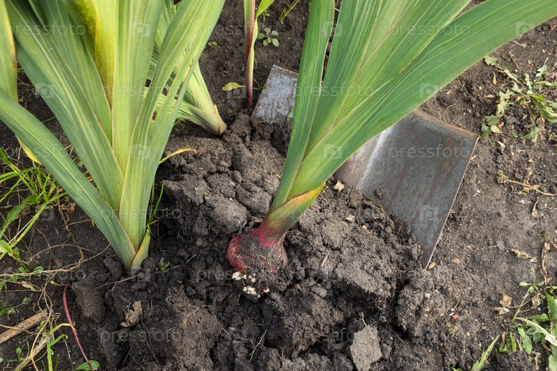 Осень выкопала луковицы гладиоли с помощью лопаты