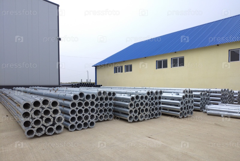 Набор металлических труб для орошения сельскохозяйственных полей. Они складываются в широкие, плотные ряды и готовятся к дальнейшему использованию или отгрузке