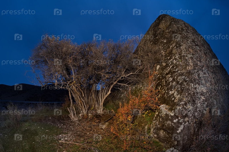 Юг Западной Сибири, Алтайские горы.Осенняя лунная ночь в каменной долине горной реки Катун недалеко от деревни Иния