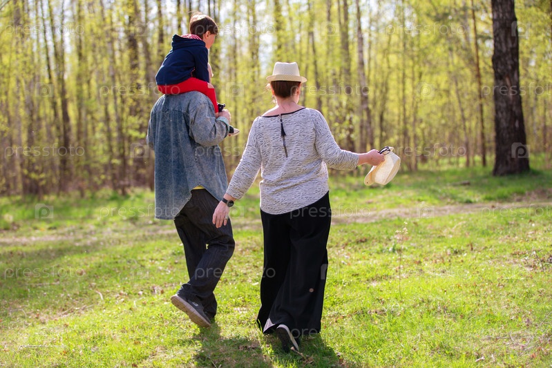 Бабушки, дедушки и внуки веселятся на улице