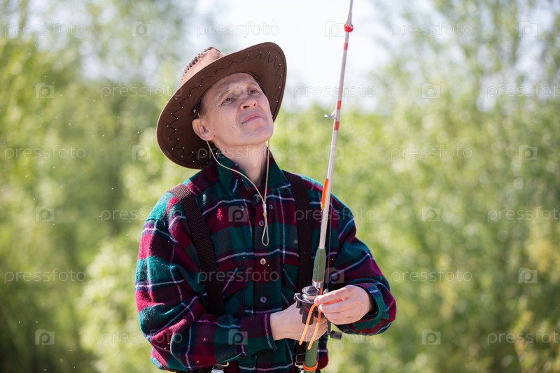 Взрослый мужчина с удочкой во время рыбалки