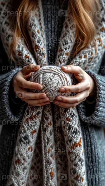 Близкий план мяча шерсти в руках женщины