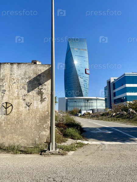 Контраст двух миров: вид на один из современных небоскребов Баку под неожиданным углом