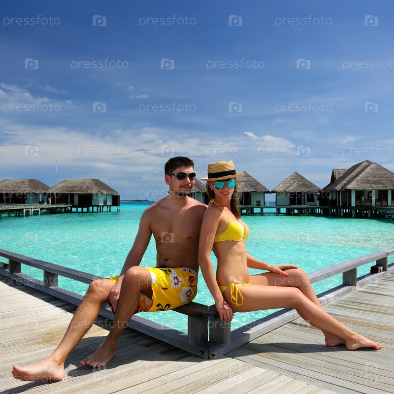 Пара на пляже на Мальдивах