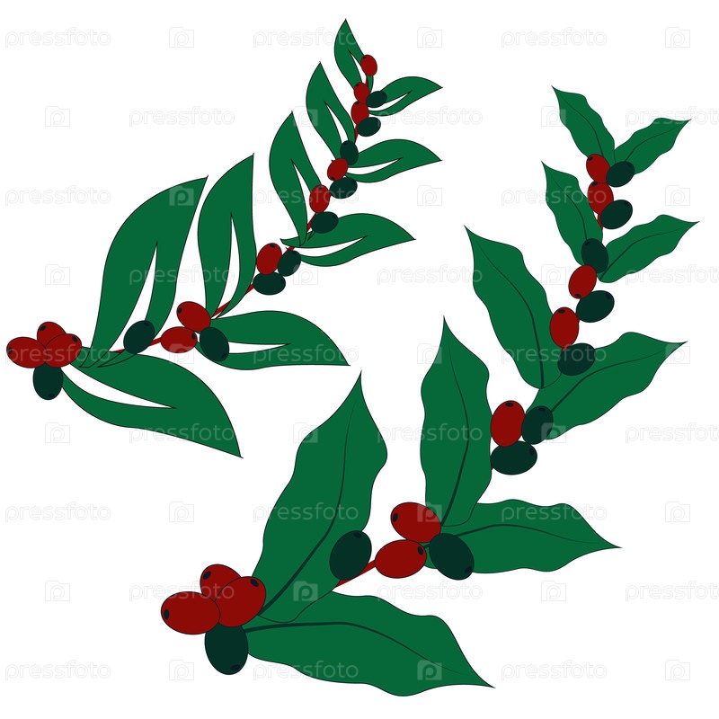 зеленые листья и ягоды