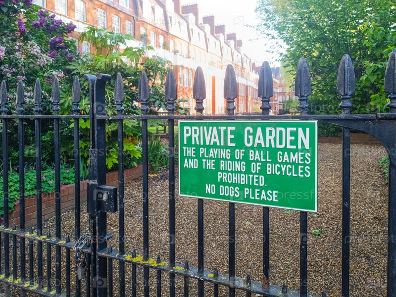 Частный садовый знак на ограждении из кованого железа. без собак, городская площадь
