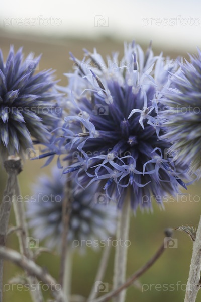 Многолетний цветок, синий, пушистый, с близкого расстояния