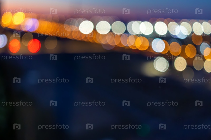 Яркие городские огни размываются, образуя красивый бокех на скучном горизонте, захватывая суть городской жизни