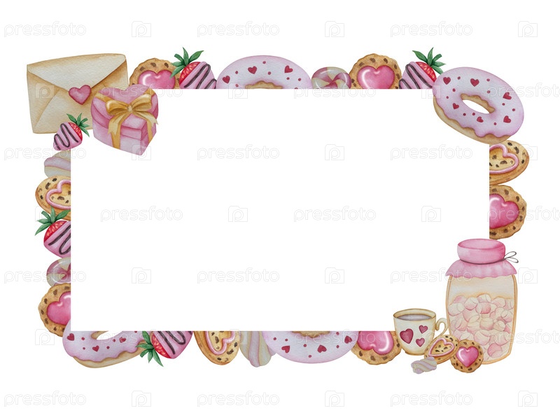 Большой акварельный набор элементов дизайна для Дня святого Валентина. сладкие иконы акварели, символ романтики, любовь к печати, открытки, плакаты, стикеры
